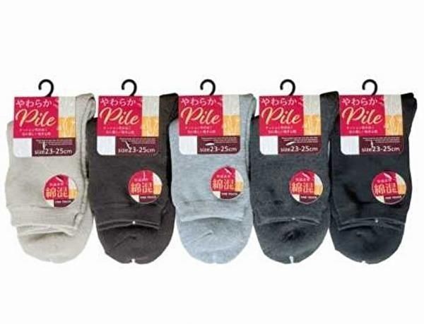 [厚5]卸@¥95/レディース用靴下23-25cm「暖かパイルソックス(無地)」10足セット