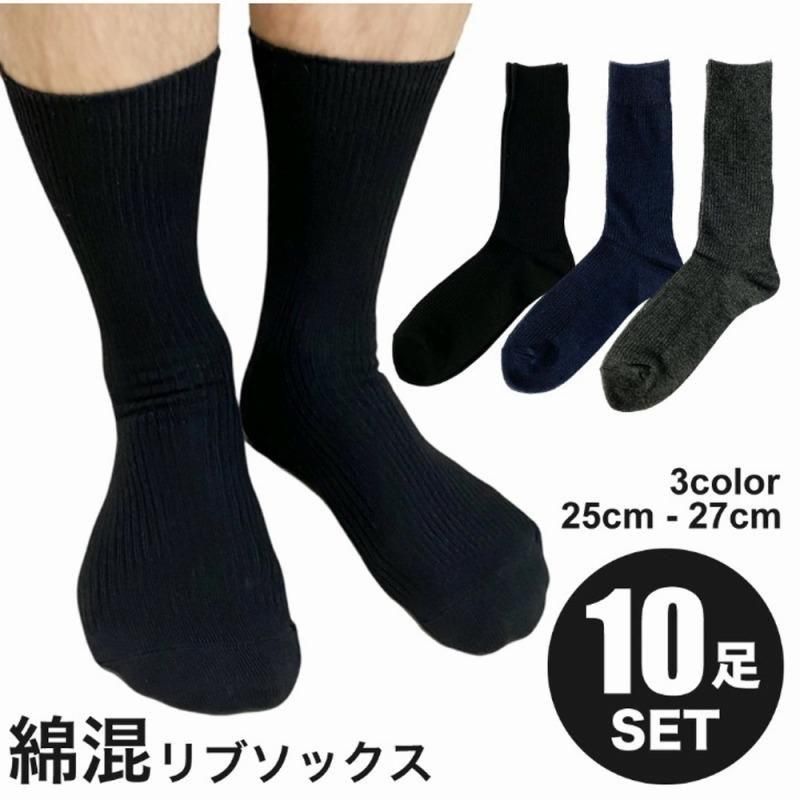 2.  > ※[厚3]卸@¥75/メンズ用靴下25-27cm「綿混リブソックス(無地)」10足セット
