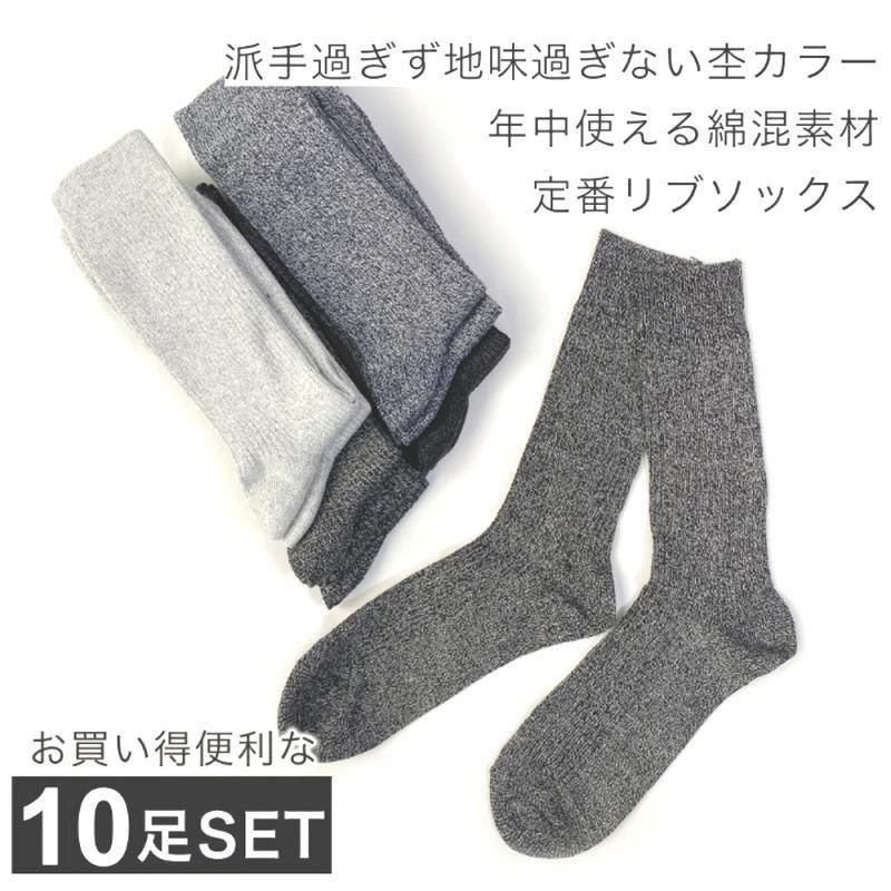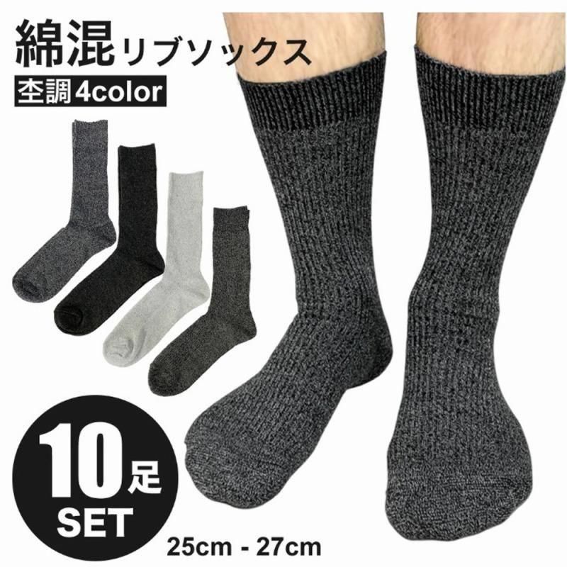 4.  > ※[厚3]卸@¥75/メンズ用靴下25-27cm「綿混リブソックス(杢調)」10足セット