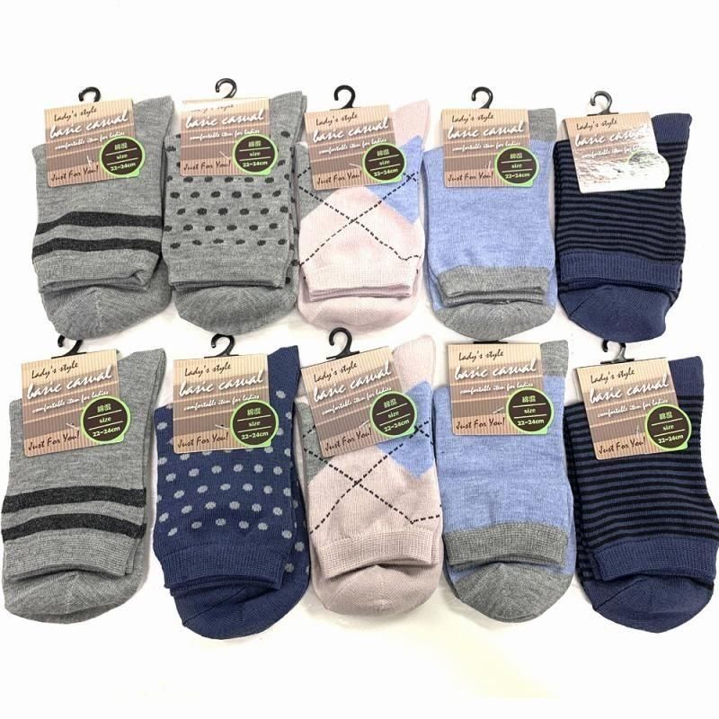 [厚5]卸@¥88/レディース用靴下23-25cm「あったかアクリル混パイルソックス(ボーダー柄)」10足セット![]()