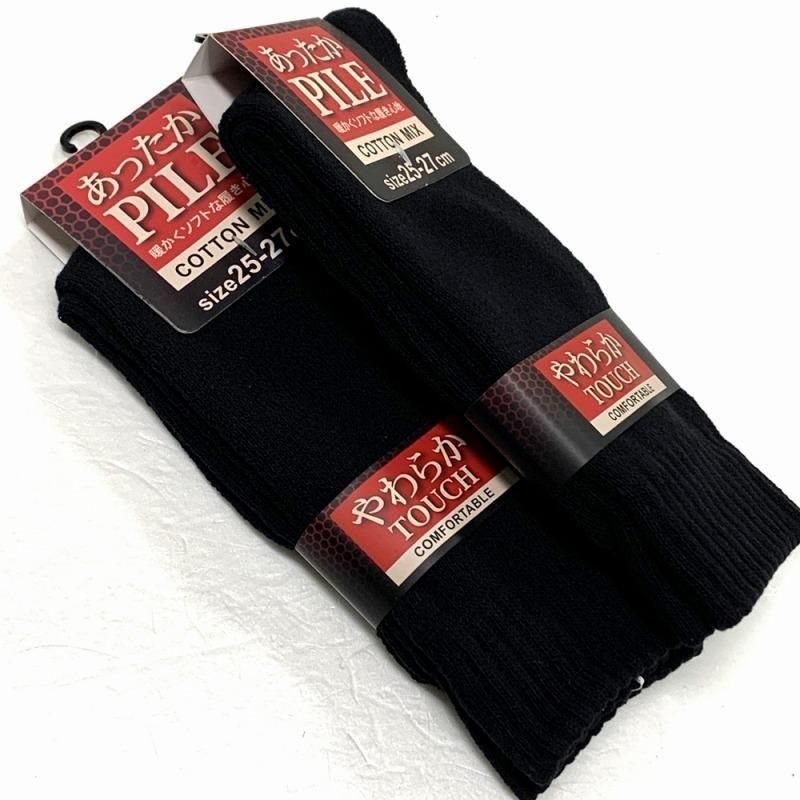 ※[厚5]卸@¥110/メンズ用靴下25-27cm「あったかパイルソックス(黒)」10足セット