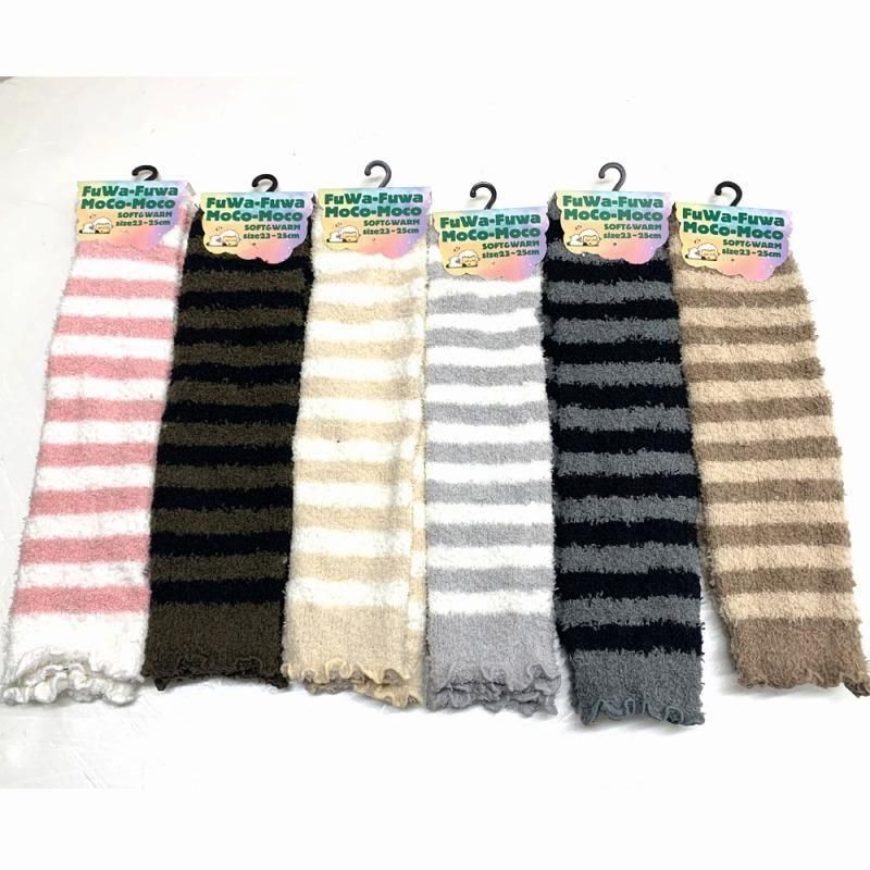 ※卸@¥99/レディース用「ふわふわ柔らかレッグウォーマー(ボーダー)」10双セット